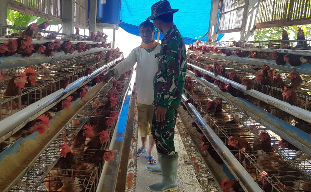 Pati – Diakhir tugasnya, Serda Sukarji anggota Satgas TMMD Reguler ke-111 Kodim 0718/Pati mengunjungi kandang ayam petelur milik Bapak Wahyudi (52) warga Dukuh Pandahan RT.02/01, Desa Tamansari, Kecamatan Jaken, Kabupaten Pati,