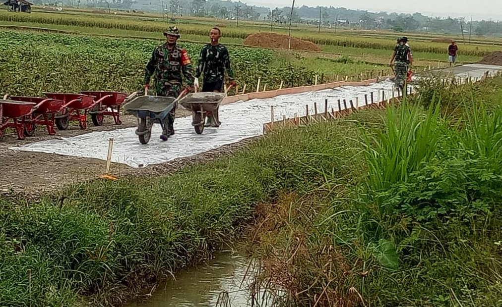 Pati – Tetap semangat melanjutkan pekerjaan fisik pengecoran jalan, bahu membahu bekerja sama dan bergotong royong bersama program TMMD Reguler ke-111 Kodim 0718 /Pati.