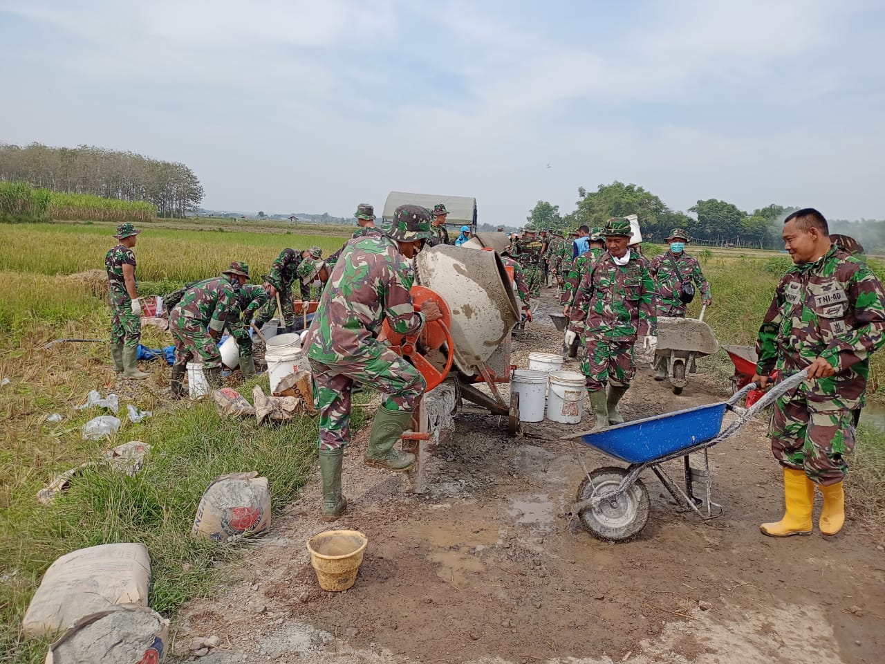 Tampak terlihat Satgas dan masyarakat sudah mulai sibuk dengan alat yang dibawanya masing-masing, Sertu Sriyono salah satu anggota satgas TMMD mengatakan jika pagi ini, setelah berlangsungnya apel pembagian tugas sasaran sektor kerja semua langsung menuju sasaran masing-masing, karena sudah dibagi kelompok maka semua sudah tahu harus berbuat apa.