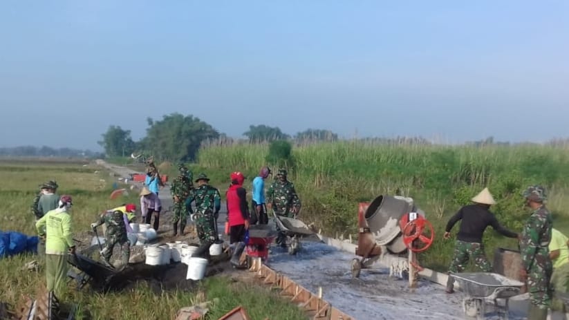 Pati – TNI Manunggal Membangun Desa (TMMD) Reguler ke 111 Kodim 0718/Pati yang pelaksanannya diDesa Tamansari, Kecamatan Jaken, Kabupaten Pati, saat ini sudah memasuki hari kesembilan setelah dibukanya secara resmi sudah menunjukan hasil yang signifikan. Itu terlihat dari berbagai pekerjaan sasaran fisik yang dalam pencapaiannya.