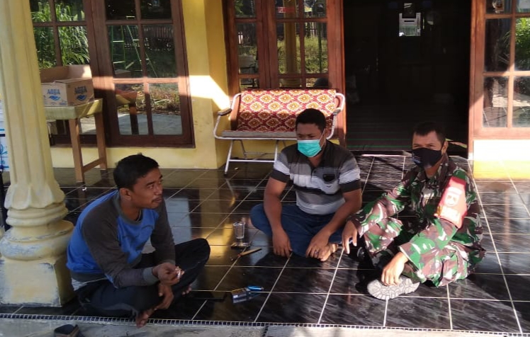 Seperti terlihat saat ini, Sertu M. Agil salah satu anggota Satgas TMMD Reguler Kodim Pati sedang melakukan kegiatan komunikasi sosial dengan Bapak Kasturi (46) warga Dukuh Kalimati, Desa Tamansari, Kecamatan Jaken, Kabupaten Pati, tokoh pemuda setempat.