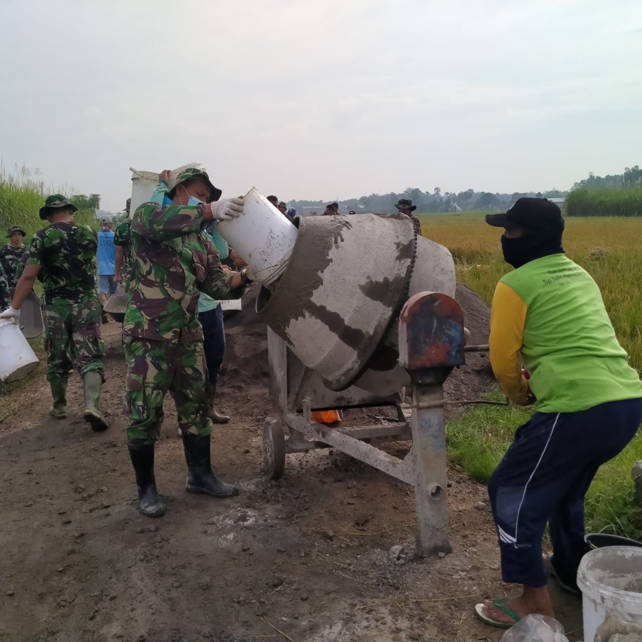 Pati- Program TNI Manunggal Membangun Desa (TMMD) Ke 111 Kodim 0718/Pati Tahun Anggaran 2021 di Desa Tamansari Kecamatan Jaken Kabupaten Pati ini masih dalam rangkaian kejar target waktu diberbagai macam program pembangunan, termasuk betonisasi jalan desa. Selasa,(29/06/2021).