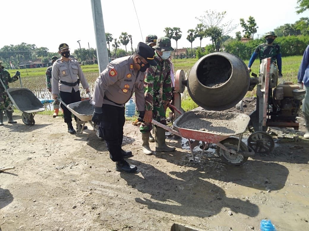 Pati – Satgas TMMD kedatangan Tamu dari Polsek, adalah Kapolsek Jaken AKP Subadi S.H, beserta anggotanya turun langsung ke lapangan bergabung dengan anggota satgas TMMD, ikut kerja pengecoran jalan, yang menghubungkan Desa Tamansari dan Desa Sumberarum, yang merupakan salah satu sasaran fisik TMMD Reguler ke-111 Kodim Pati .