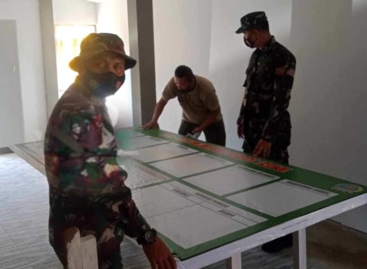 PATI – Dalam rangka persiapan menjelang pembukaanTMMD ke-111 Kodim 0718/Pati Tahun 2021, personil Kodim Pati mempersiapkan sketsel serta posko terpadu bagi kegiatan TNI Manunggal Membangun Desa (TMMD) di Desa Tamansari, Kecamatan Jaken, Kabupaten Pati.