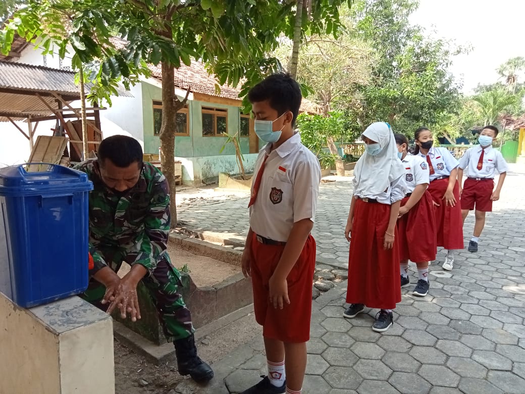 Serda Darmanto anggota Satgas juga menyempatkan datang ke SD Negeri Tamansari untuk mensosialisasikan 5M kepada para siswa. Karena ada ujian kenaikan kelas, jadi para siswa diwajibkan datang ke sekolah. Dengan penerapan protokol kesehatan dan himbauan untuk selalu melaksanakan 5M, kegiatan di sekolah bisa berjalan dengan lancar.