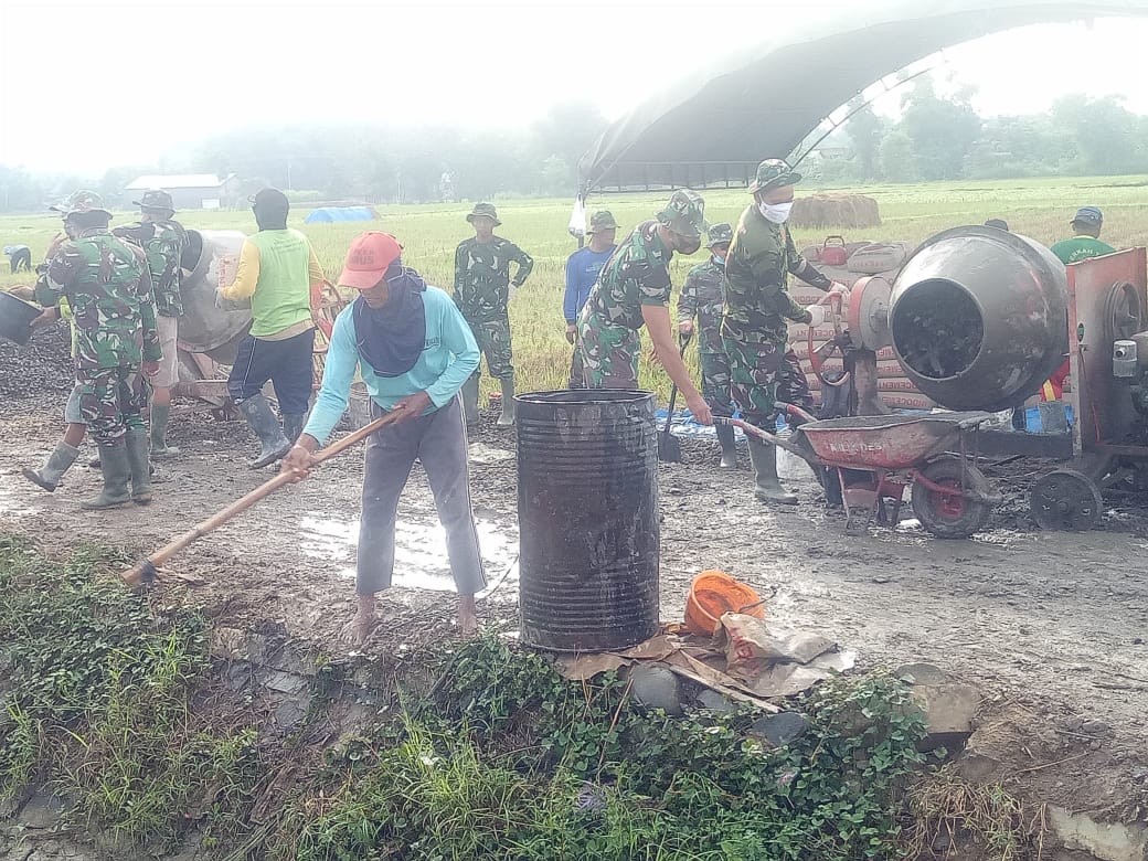 Pati-Raungan mesin molen pengaduk adonan beton dilokasi betonisasi jalan di desa Tamansari kecamatan Jaken sudah tidak dihiraukan oleh Satgas TMMD Reguler 111 Kodim Pati.