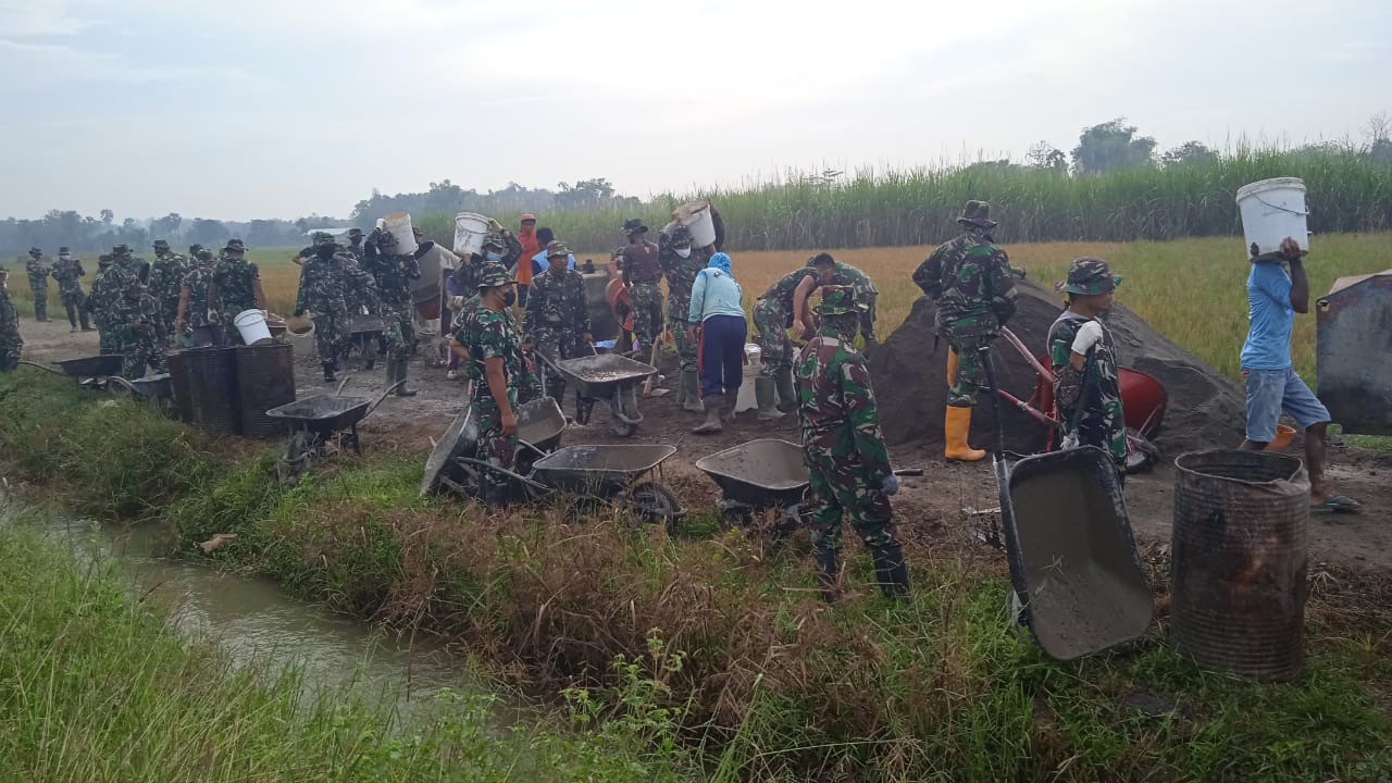 Pati – Dengan adanya pembangunan jalan penghubung amtara yang sudah masuk tahap pengecoran yang sampai dengan saat ini masih berlangsungmenambah kian hidup suasana desa yang semula sepi. Dengan sangat bersemangat Para Satgas TMMD beserta masyarakat dalam melaksanakan proses pengerjaan pengecoran di bantu dengan alat angkong dan mesin Molen selain cangkul dan alat lainnya sehinggga menambah kemudahan dalam pengerjaannya dan penghematan waktu.,di tambah lagi dengan adanya air yang melimpah yang cukup untuk proses pencampuran material Minggu(20/06/2021).