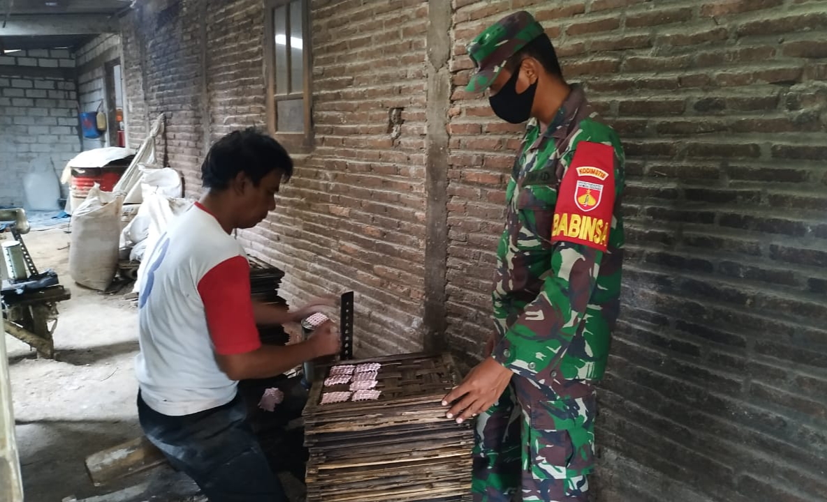 Pati – Serda Subakir anggota Satgas TNI Manunggal Membangun Desa (TMMD) Reguler ke-111 Kodim 0718/Pati terlihat sedang menyambangi warga pengusaha kerupuk rumahan milik Bapak Harjono (56) warga Dukuh Kalimati, Desa Tamansari, Kecamatan Jaken, Kabupaten Pati,