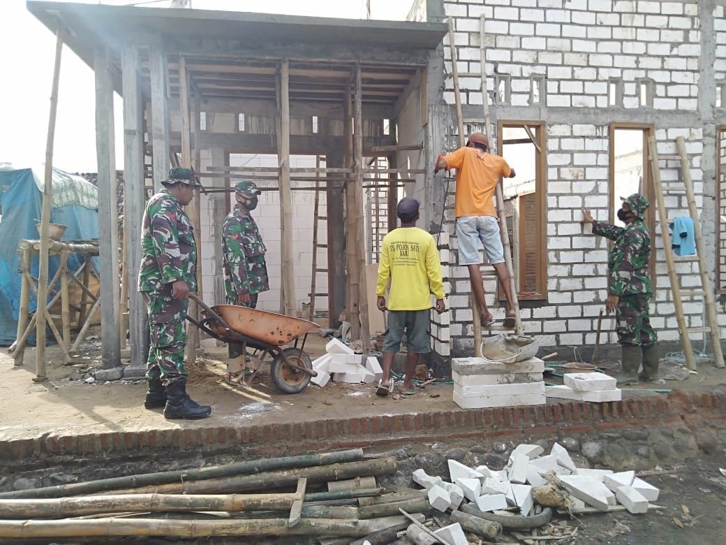 PATI – Perbaikan Rumah Tidak Layak Huni (RTLH) kepada penerima bantuan rehab rumah yang menjadi program sasaran TMMD 111 Ta 2021 Kodim 0718/Pati, terus berlangsung salah satunya milik warga Dukuh Kemiri, Desa Tamansari, Kecamatan Jaken, Kabupaten Pati, Jawa Tengah, yang saat ini mencapai 60 persen, Kamis (24/06/2021).