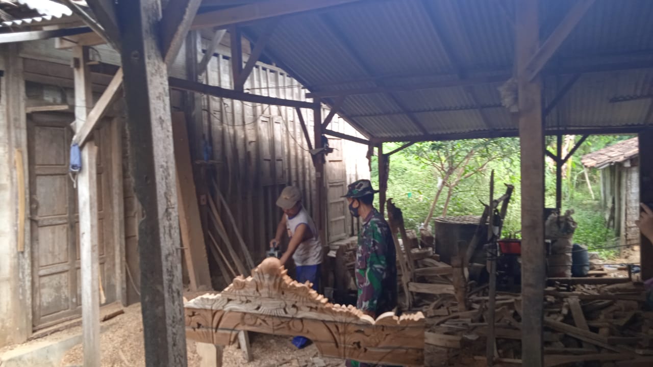 Serda Sukarji aalah satu anggota satgas TMMD Reguler 111 Kodim Pati disela istirahat menyambangi tempat pembuatan mebel dengan maksut bertukar pengalaman.Selasa,(22/06/2021).