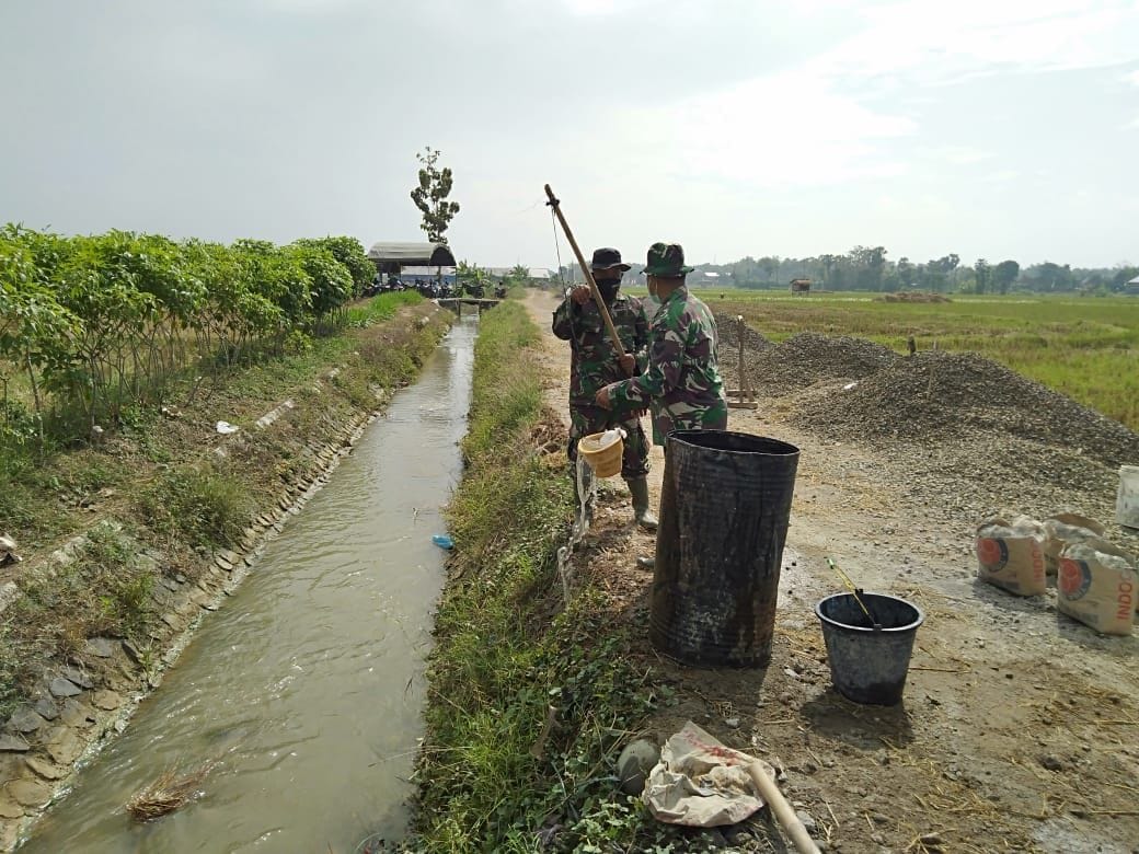 Hal itu ditunjukkan dengan wajah semangat semua personel TMMD Reguler ke-111 Kodim 0718/Pati, yang di laksanakan di Desa Tamansari, Kecamatan Jaken, Kabupaten Pati, walau ditengah panasnya terik matahari pekerjaan betonisasi itu terus berjalan,(Mf/0718).