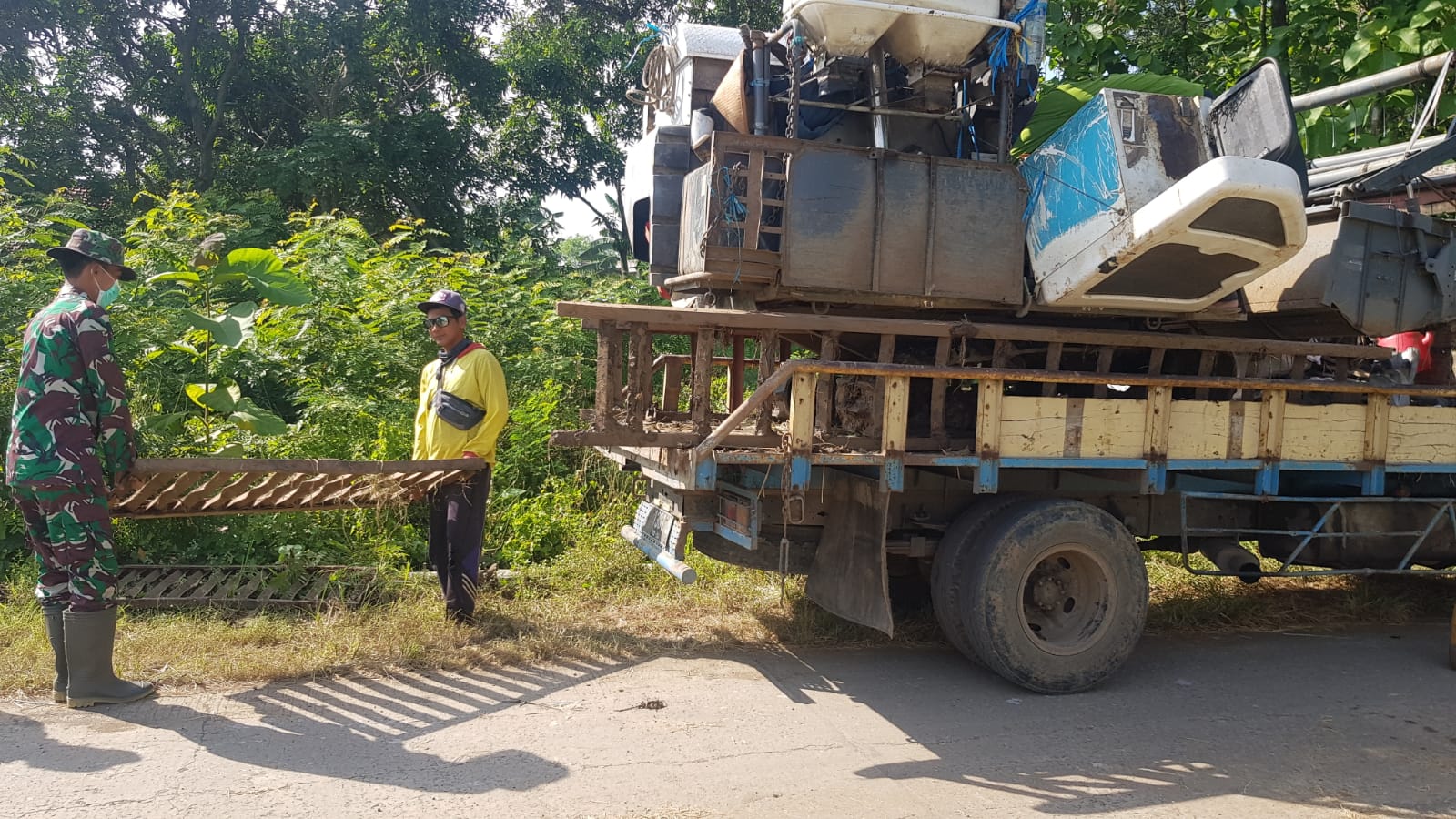 Salah satu satgas TMMD Sertu Toha Untoro yang melihat kegiatan tersebut tertarik dan turut membantu menata tangga yang akan digunakan untuk menurunkan mesin pemanen padi atau combine harvester mengatakan bahwa panen menggunakan alat tersebut sudah banyak dijumpai didesa Tamansari.