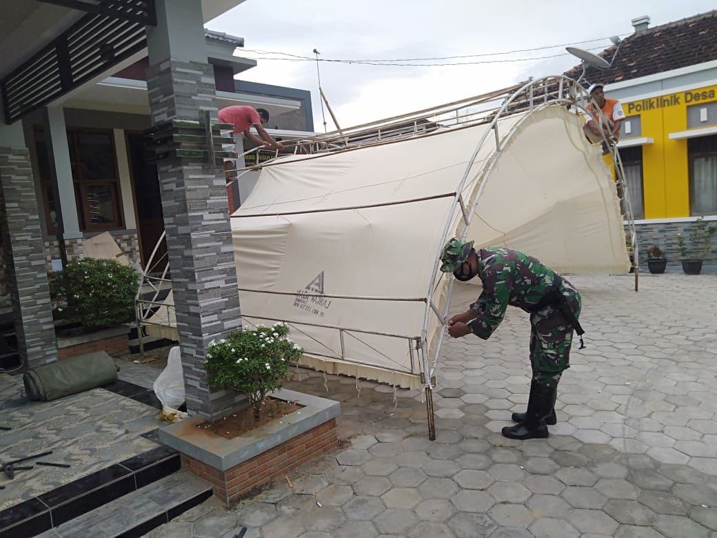 Kegiatan persiapan itu meliputi pemasangan spanduk, persiapan tempat upaca, pembersihan lokasi dan juga pendirian tenda. Dengan kesigapan dan kecepatan Babinsa mereka mulai mendirikan tenda yang rencananya untuk kegiatan upacara pembukaan TMMD 111.