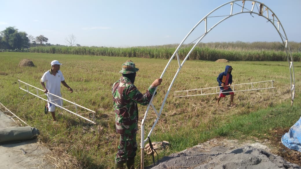 Pati – Guna menghemat waktu dan tenaga, Satgas TMMD Reguler Ke-111 Kodim 0718/Pati, berinisiatif untuk mendirikan tenda di lokasi dekat pekerjaan pengecoran jalan sebagai titik tempat beristirahat di Desa Tamansari,Kecamatan Jaken, Kabupaten Pati. Senin (21/06/2021).