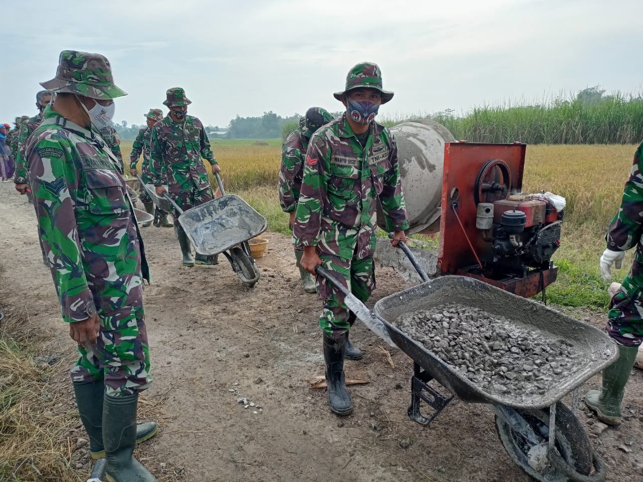 Pati- Dalam keseharian berkegiatan dalam pengecoran jalan di Desa Tamansari Kecamatan Jaken Kabupaten Pati, pada program TNI Manunggal Membangun Desa (TMMD) Reg- 111 Kodim 0718/Pati Tahun Anggaran 2021 tidak terlepas dari yang namanya alat pengangkut gerobak dorong Artco. Kamis,(01/07/2021).