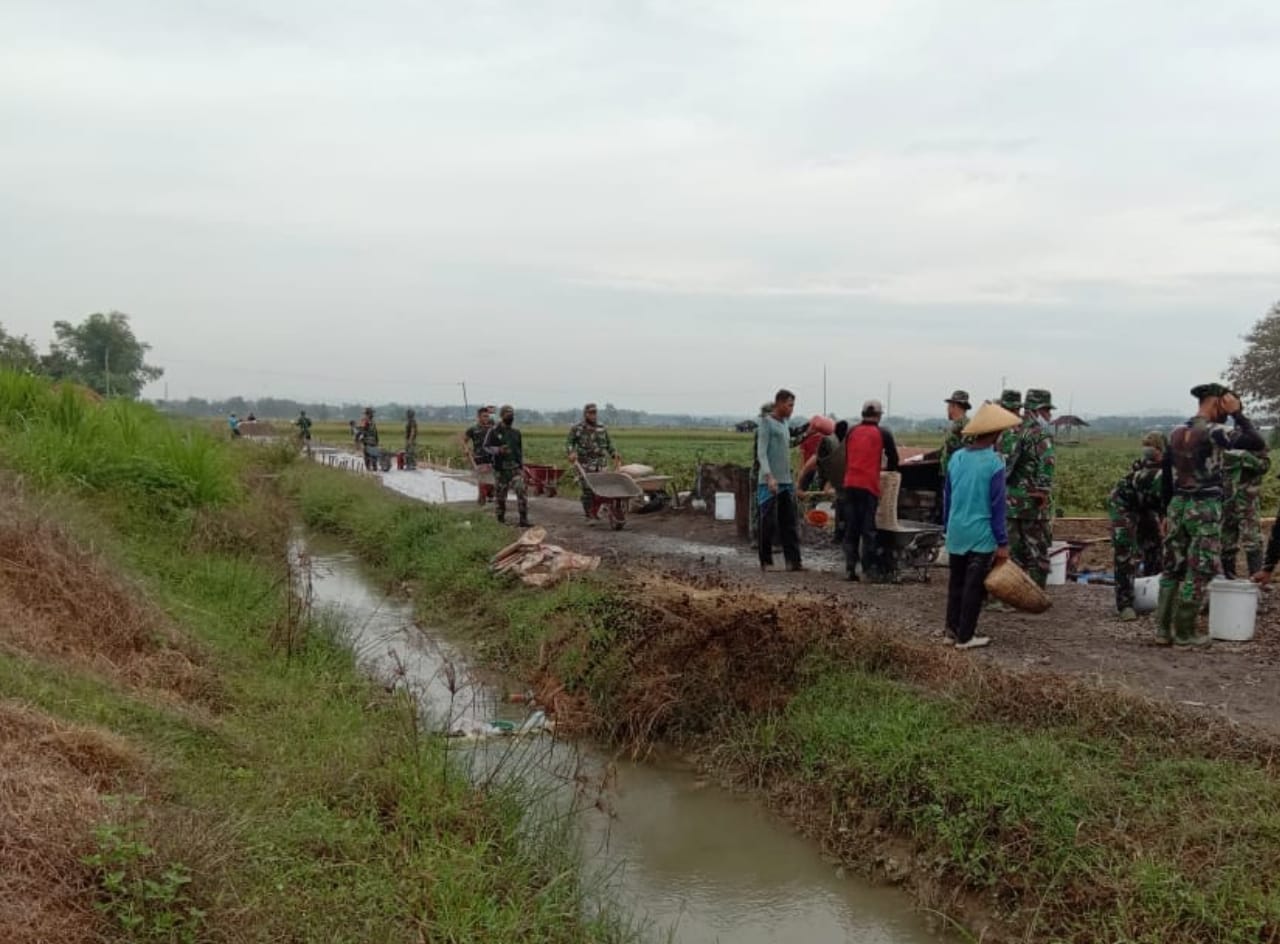 Pati-Hujan yang ahir-ahir ini mengguyur wilayah kecamatan Jaken dan sekitarnya membuat kegiatan betonisasi jalan dalam program TMMD Reguler 111 Kodim Pati agak tersendat.