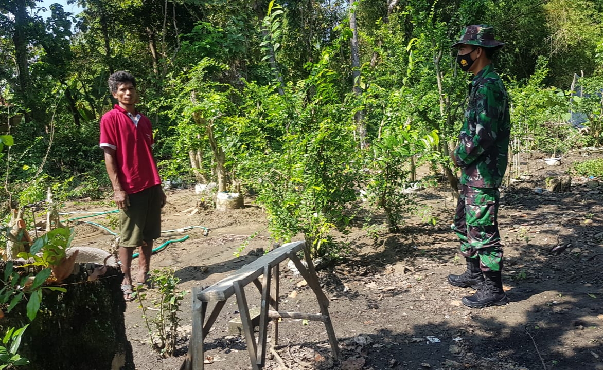 Pati – Komunikasi Sosial (Komsos) dengan warga masyarakat Desa Tamansari menjadi salah satu cara anggota TNI yang tergabung dalam Satgas TMMD ke-111 Kodim Pati untuk menjalin kemanunggalan dengan masyarakat. Kali ini sambil mengisi istirahat siang di sela-sela pengerjaan renovasi RTLH di Dukuh Kemiri, Desa Tamansari, Kecamatan Jaken, Kabupaten Pati, Serda Sukarji melaksanakan anjangsana ke rumah Jatmiko warga RT.02/02 Dukuh Kemiri, Desa Tamansari, Kamis (10/6/2021).