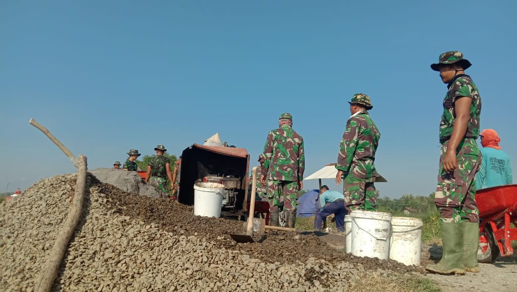 Danramil 16/Jaken, Kapten Kav Budi Karyadi yang membawahi Pos Militer Kecamatan Jaken mengatakan terik matahari tidak mematahkan semangat Satgas TMMD bersama warga desa dengan menggunakan alat pengaduk cor berupa Mesin molen Beton yang sangat membantu mempercepat pekerjaan pembangunan rabat beton terbukti dengan antusiasnya menanti setiap muntahan material cor dari mesin molen ke dalam angkong.