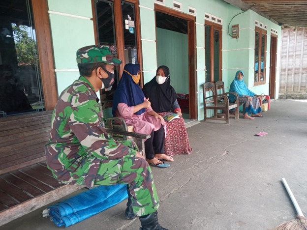 Tampak terlihat Sertu Ikmal memberikan sosialisasi kepada Ningsih (39). Dan dijelaskan Sertu Ikmal, dengan kondisi Covid-19 seperti ini, maka jumlah personel dan warga yang terlibat juga diatur sedemikian rupa agar tetap mematuhi protokol kesehatan yang berlaku.