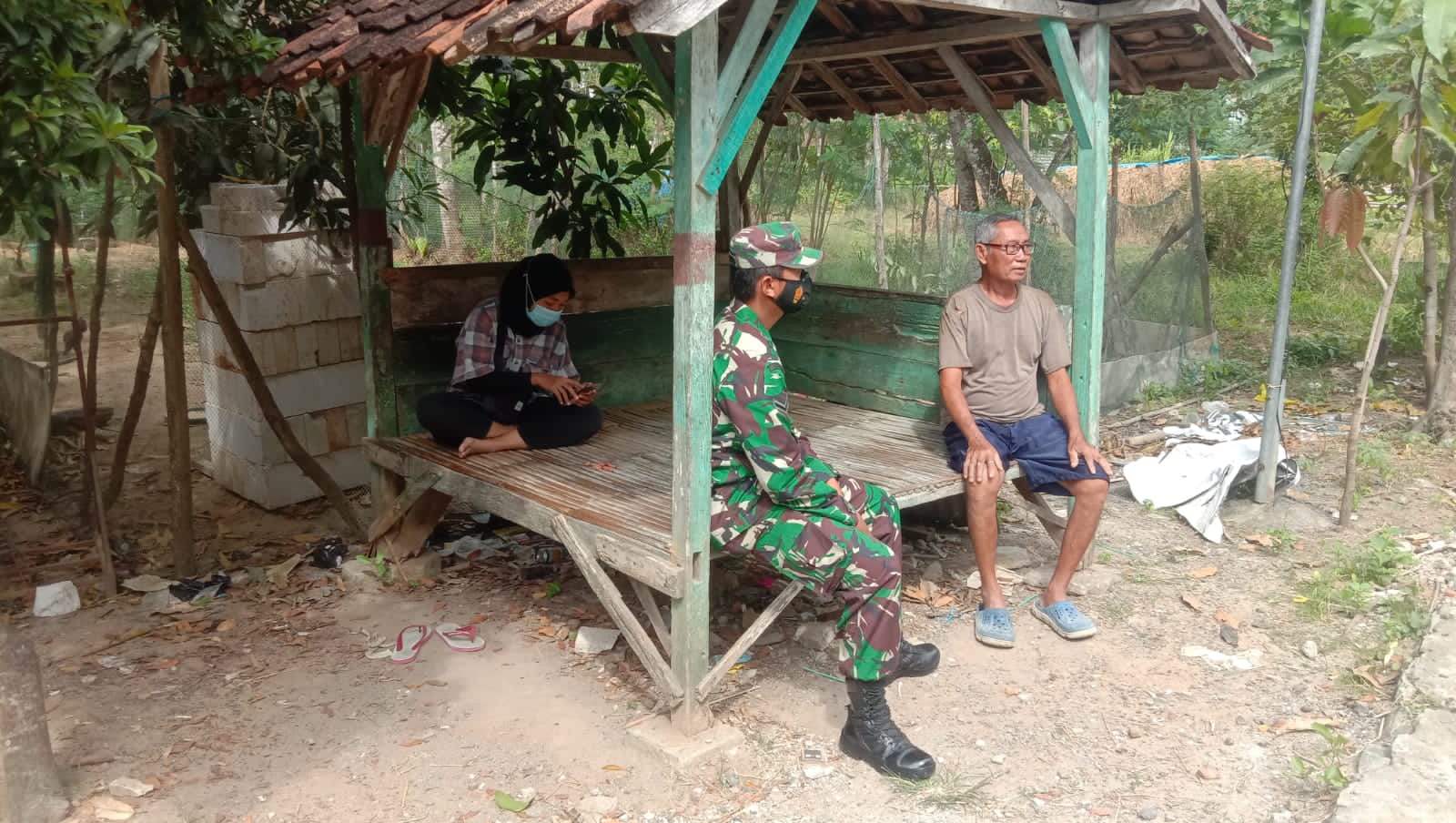 Walaupun berbincang-bincang baik mengenai pelaksanaan program TMMD kemarin maupun membicarakan mengenai situasi yang saat ini masih Pandemi. Sambil menyampaikan himbauan pemerintah untuk tetap Prokes, agar penyebaran virus dan Pandemi segera selesai berlalu dari bumi Indonesia khususnya Desa Tamansari.