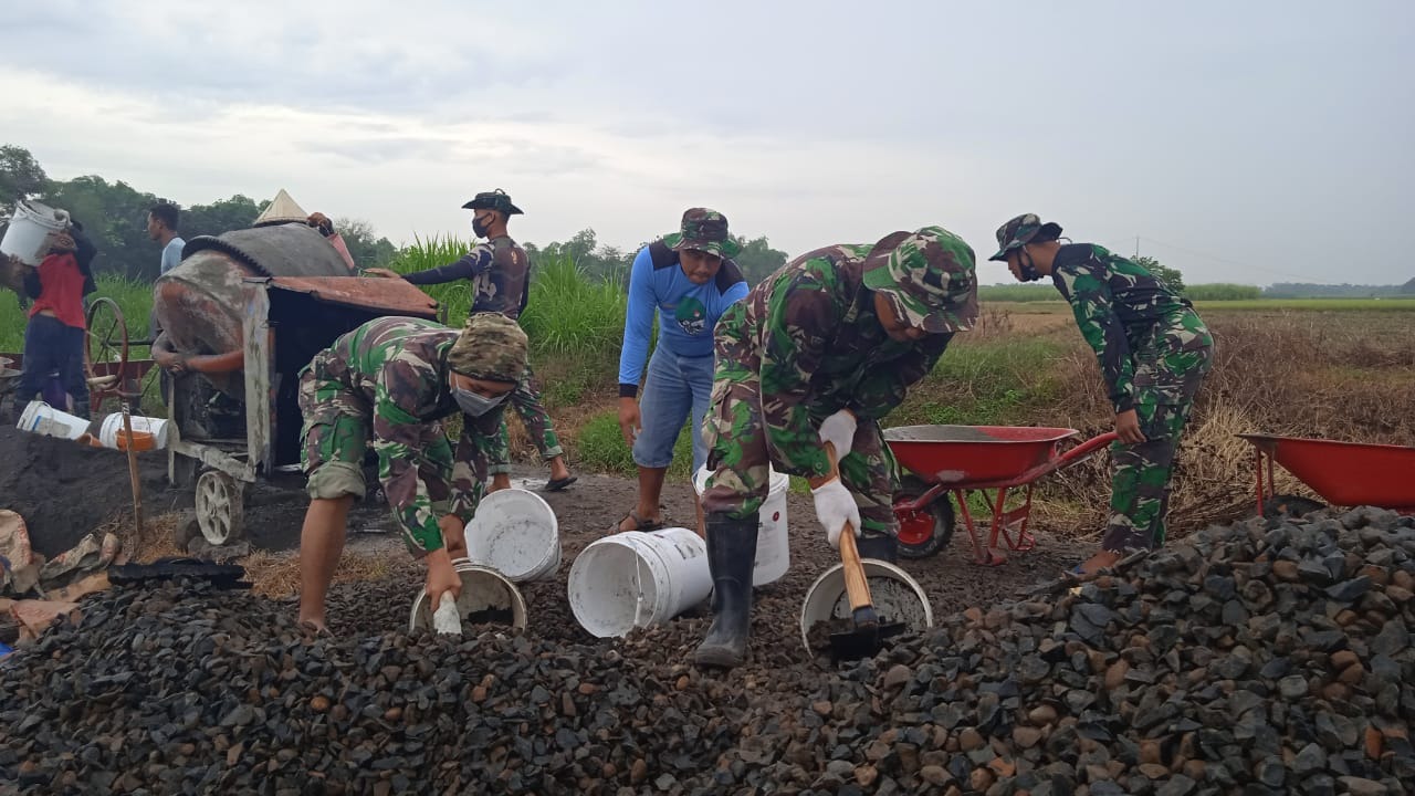 Pati – Dengan bergulir pembangunan jalan penghubung antara Desa Tamansari dengan Desa sumberarum Kec.Jaken Kab.Pati Para Satgas TMMD beserta masyarakat setempat dan dibantu dengan alat berat serta alat seadanya bergotong royong membuat jalan penghubung antar desa supaya hasilnya dapat dinikmati untuk hari ini esok dan anak cucu kelak .Disaat seperti inilah sudah waktunya kita berkarya untuk bangsa dan negara,(Senin,21/06/2021).