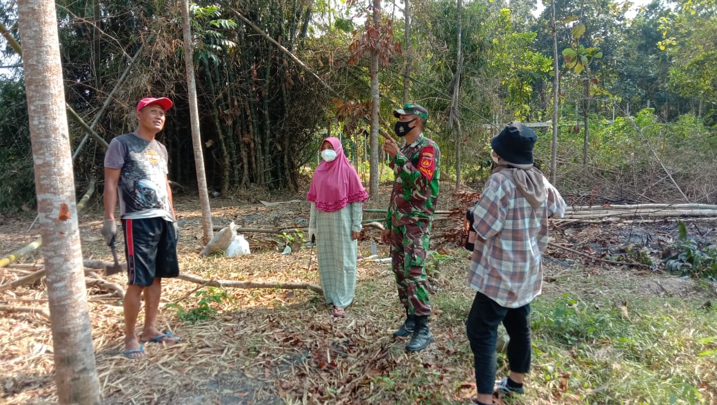 Koptu Erwan Santoso terlihat terlibat percakapan dengan tiga orang warga menyampaikan informasi bahwa saat ini terjadi lonjakan covid 19 khususnya diwilayah kabupaten Pati.