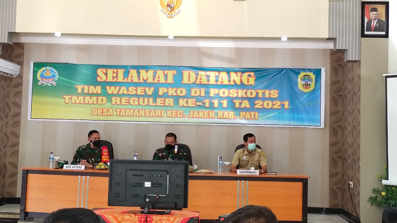 Pati-Rombongan Tim Inspektorat Kodam IV Diponegoro yang dipimpin oleh Ir um Itdam IV/Diponegoro Kolonel CPM Bambang Guritno menerima paparan dari Dansatgas TMMD regular 111 Kodim Pati.Selasa,(22/06/2021).