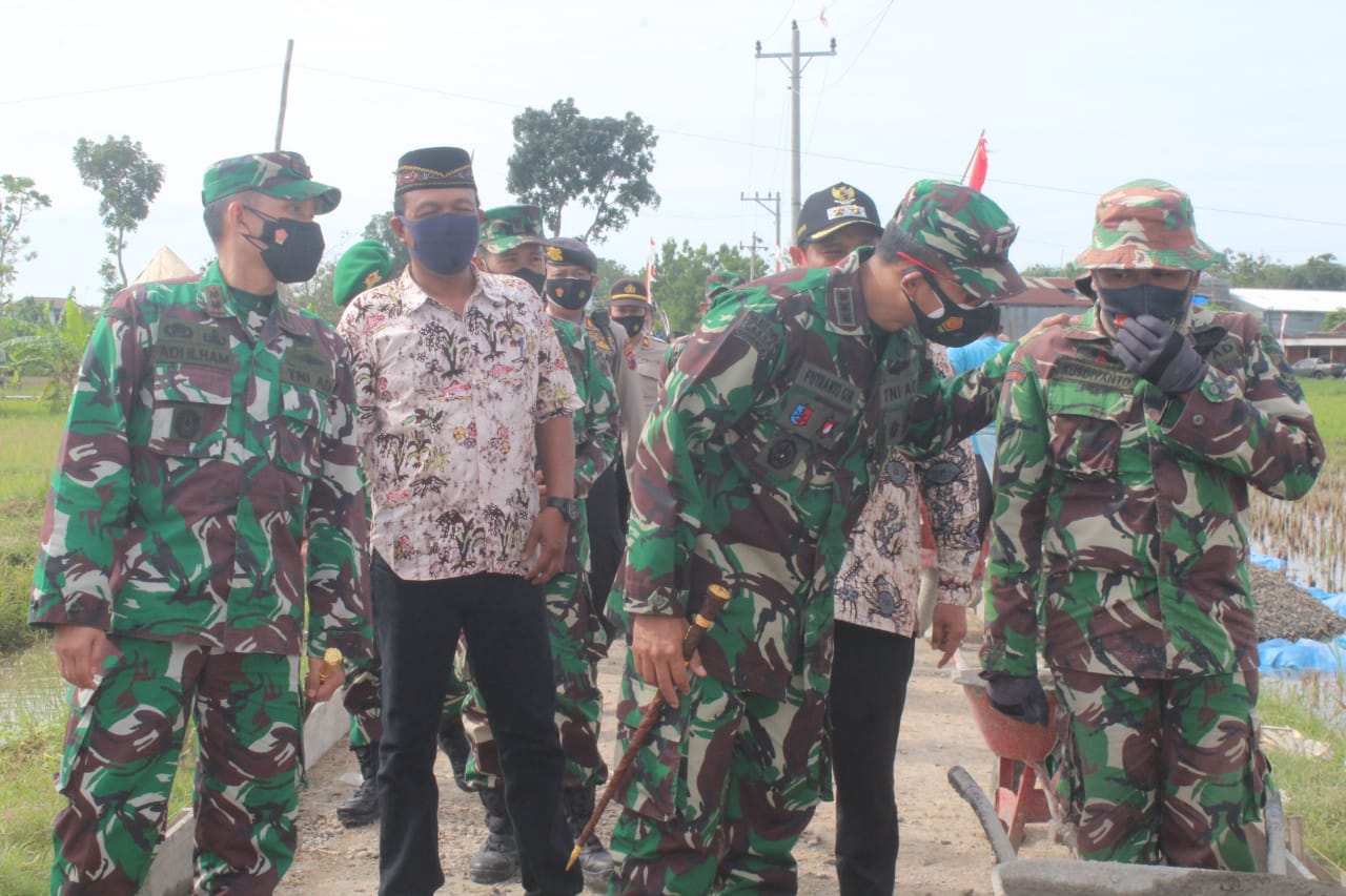 Teelihat rombongan Danrem berjalan kaki menyusuri jalan ditengah area persawahan.