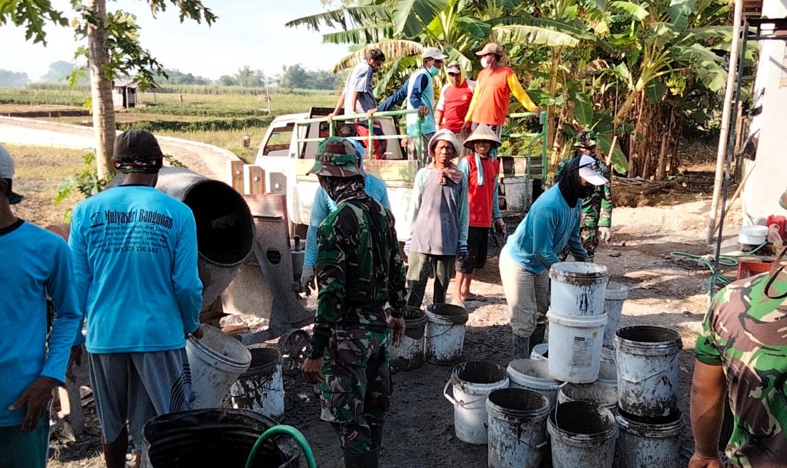 dalam pembangunan jalan rabat beton dalam program TNI Manunggal Membangun Desa (TMMD) Kodim 0718/Pati Reguler Ke-