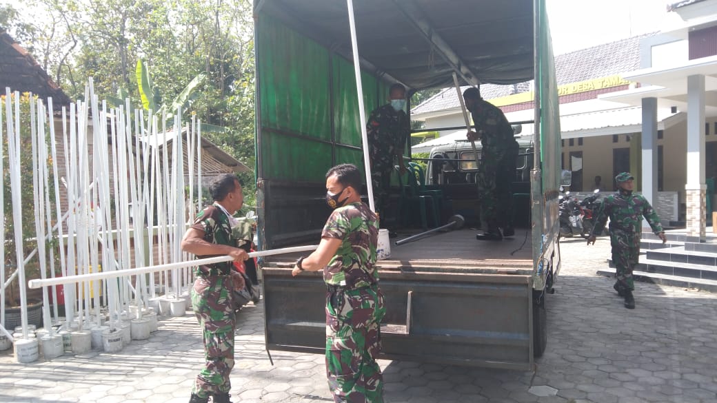 Pati – Dengan berakhirnya kegiatan program TMMD Reguler 111 Kodim 0718/Pati di Desa Tamansari, Kecamatan Jaken, Kabupaten Pati, ratusan umbul-umbul dan bendera yang yang dipasang telah dilepas kemudian disimpan kembali. Untuk hari ini tiang bendera dan tiang umbul-umbul yang sebelumnya disiapkan dari tim peralatan Kodim Pati mulai dibereskan untuk dibawa kembali ke kantor peralatan Kodim. Jum’at (16/7/2021).