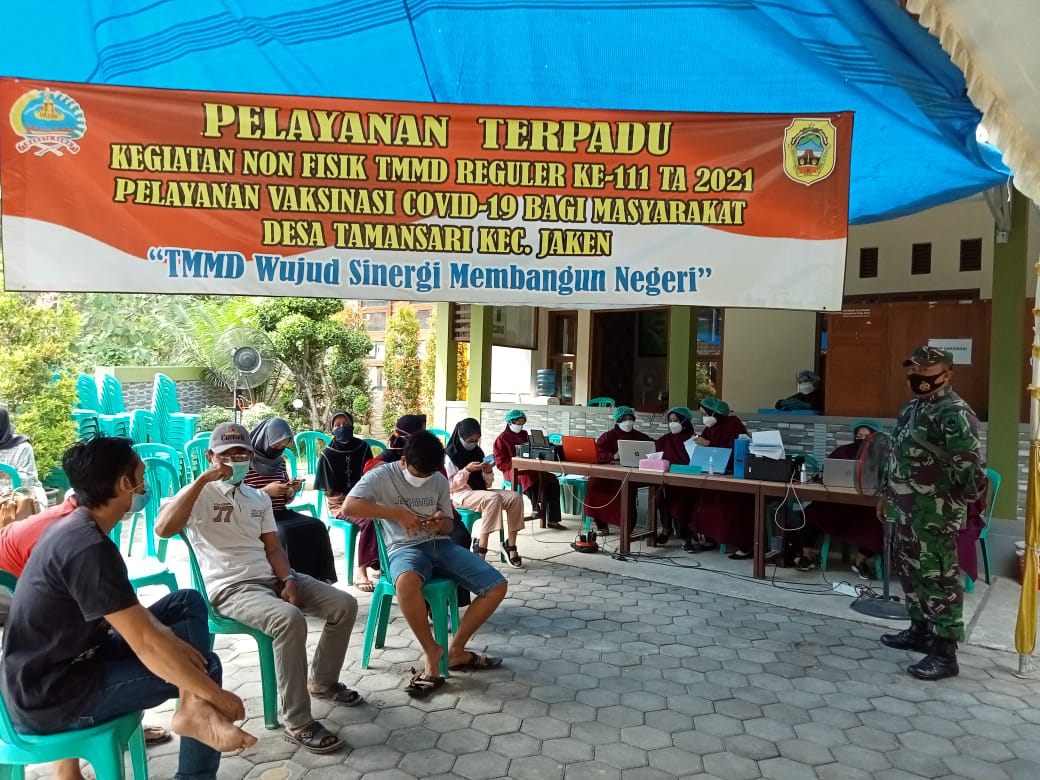 Batuud Koramil 16/Jaken Peltu Agung mengatakan bahwa pelaksanaan vaksin kali ini banyak warga yang minat untuk di vaksin. Tampak ratusan warga yang mendaftar vaksin begitu antusias untuk mendapatkannya di Balai Desa Tamansari yang diselenggarakan oleh Kodim 0718/Pati yang mana saat ini juga tengah melaksanakan kegiatan TMMD Reguler ke-111. Batuud mengaku senang dan bersyukur banyak masyarakat yang mendaftarkan diri untuk menerima vaksin covid-19 tahap 1.