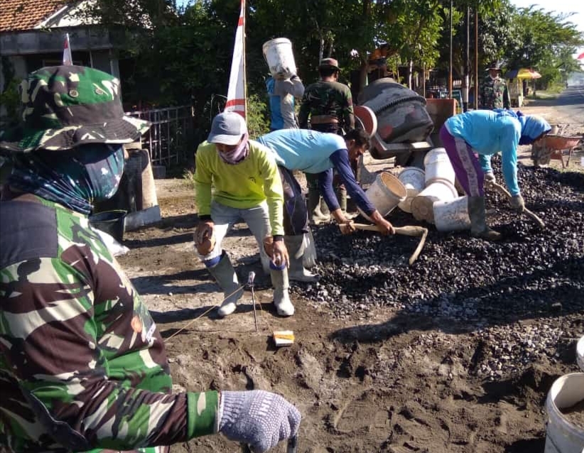 Pati – Pelaksanaan TNI Manunggal Membangun Desa (TMMD) Reguler ke-111 Kodim 0718/Pati di Desa Tamansari, Kecamatan Jaken, Kabupaten Pati, Jawa tengah, tinggal menyisakan sepekan ke depan. Target utama sasaran fisik TMMD berupa pengecoran jalan sepanjang 1.450 meter dan renovasi 16 unit Rumah Tidak Layak Huni (RTLH) sudah hampir selesai.