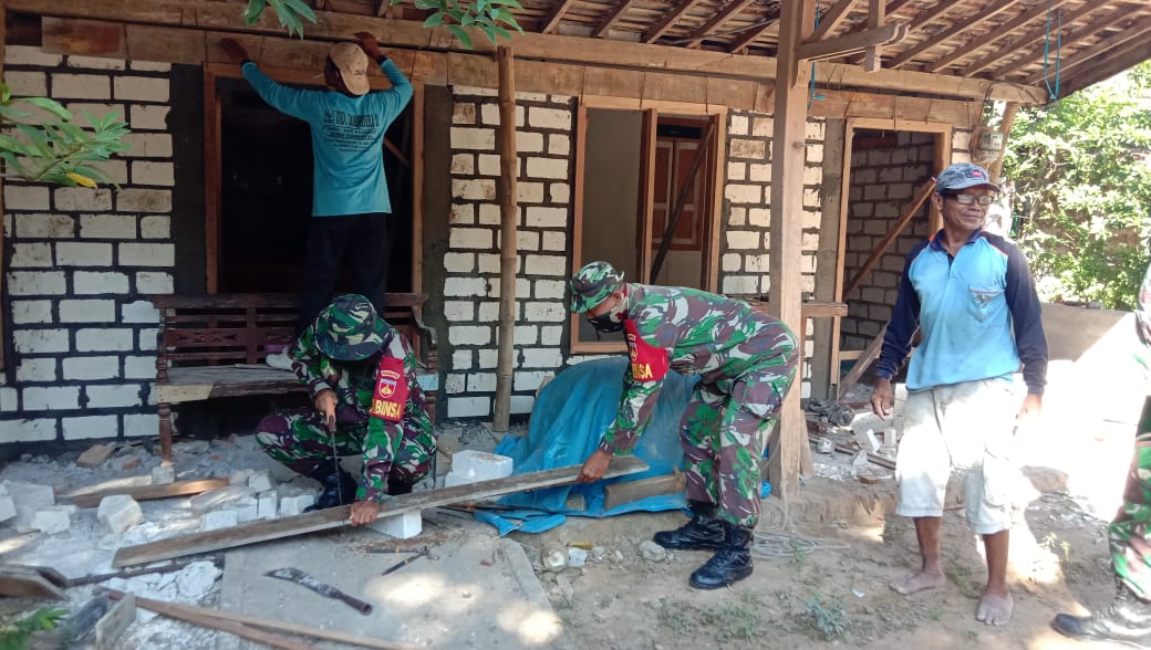 Pati – Dengan terlaksananya program yang dilakukan selama TNI Manunggal Membangun Desa (TMMD) Reguler Ke-111 Kodim 0718/Pati, anggota satgas TMMD bersama masyarakat bergotong royong perbaiki rumah warga Desa Tamansari yang menjadi sasaran Rumah Tidak Layak Huni (RTLH).