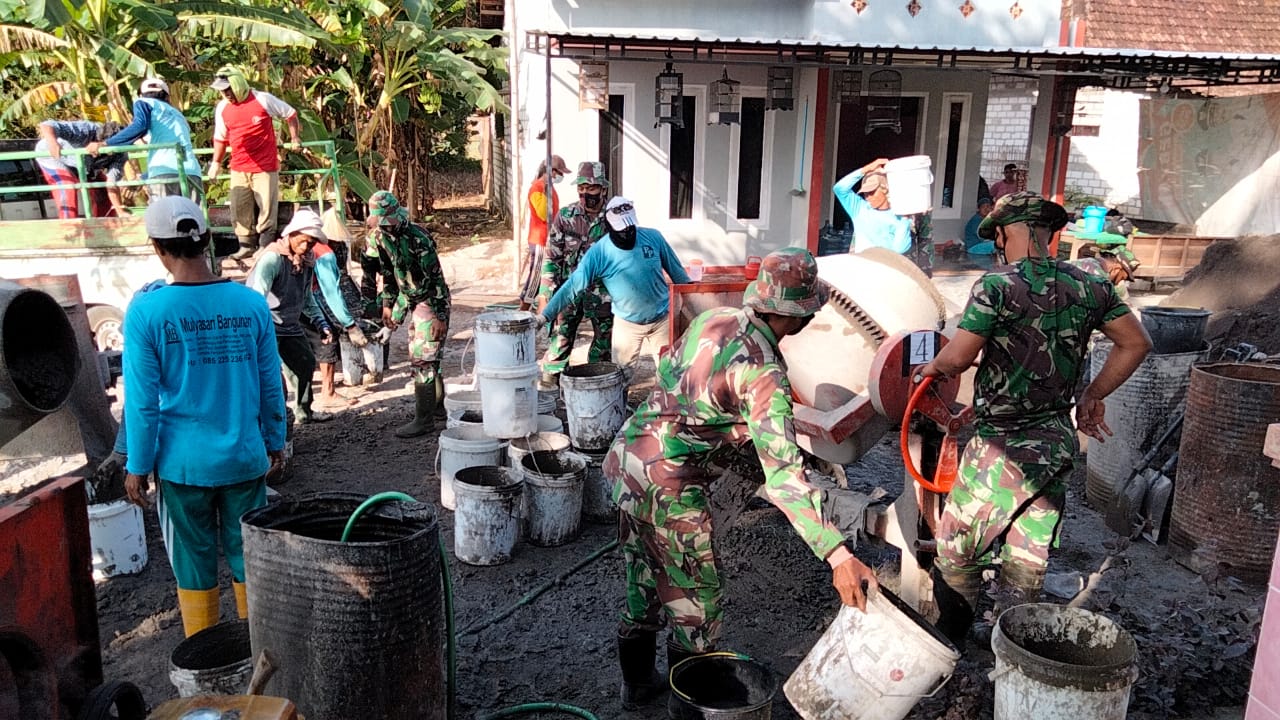 Pati – Program Tentara Manunggal Membangun Desa (TMMD) Reguler Ke-111 Tahun 2021 yang dilaksanakan di wilayah teritorial Kodim 0718/Pati, salah satu kegiatan sasaran fisik TMMD 111 adalah melaksanakan pengecoran jalan penghubung antar Desa Tamansari dengan Desa Sumber Arum. Jumat (25/6/2021)