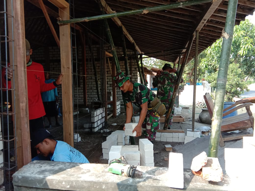Pati- Pekerjaan rehab Rumah Tidak Layak Huni (RTLH) pada sasaran fisik program Tentara Manunggal Membangun Desa (TMMD) reguler ke 111 Kodim 0718/Pati, walaupun saat ini dalam masa pra TMMD namun sudah mulai terlihat hasilnya, hal itu tampak kita lihat pada rehab rumah milik Suyat (37) yang terletak di RT 04 RW 01 Desa Tamansari, Kecamatan Jaken, Selasa (08/06/2021).