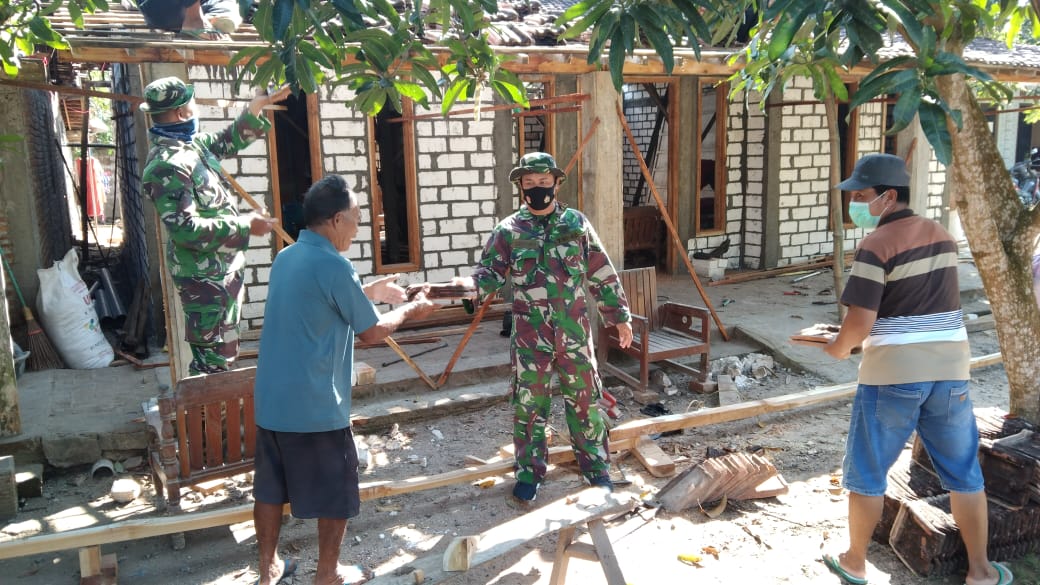 Sertu Dwi Irawan anggota satgas TMMD 111 Kodim 0718/ Pati, mengatakan, dirinya bersama dengan warga Desa Tamansari,Kecamatan Jaken, Kabupaten Pati yang ikut membantu kegiatan gotong royong pada rumah Sukandar, RT 04 RW 02 penerima RTLH, dengan menaikkan genteng pada rumah Sukandar.