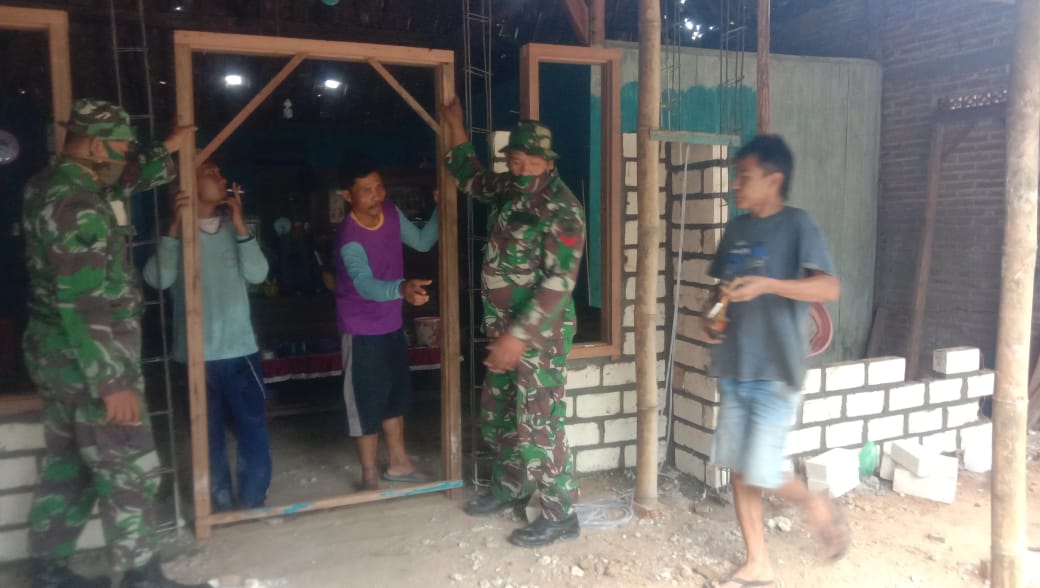 Dari pantauan, tampak para anggota Satgas TMMD bersama warga sedang melaksanakan pemasangan kusen pintu dan jendela di rumah milik Subekti Priyo (40).