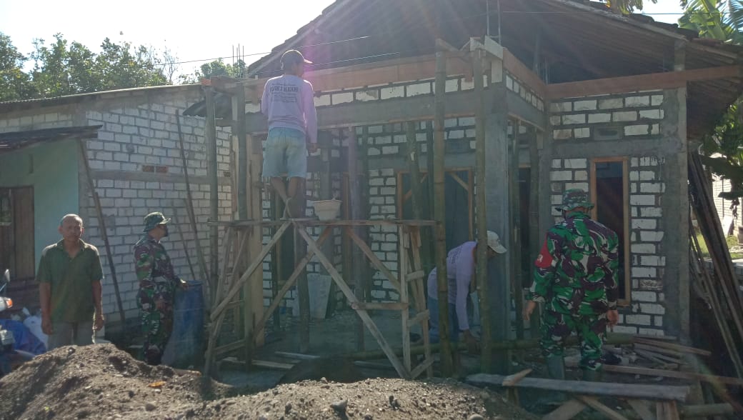 Rumahnya sekarang dalam proses pemasangan dan pengecoran kerangka teras depan rumah. Kesibukan personel TNI satgas TMMD dan tukang dari warga mulai nampak, ada yang mengukur dan memotong papan, ada yang menyiapkan adonan cor beton (pasir, split dan semen), serta ada juga yang diatas memaku kerangka.