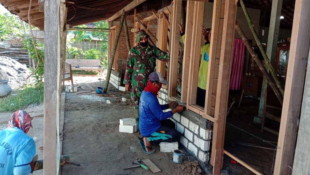 Pati – Semangat kebersamaan anggota TNI yang tergabung dalam Satgas TMMD Ke-111 Kodim 0718/Pati bersama warga bekerjasama mengerjakan sasaran fisik rehab Rumah Tidak Layak Huni (RTLH) di lokasi Desa Tamansari, Kecamatan Jaken, Kabupaten Pati, yang sekarang sudah mulai melakukan pekerjaan pemasangan kusen pintu dan jendela .