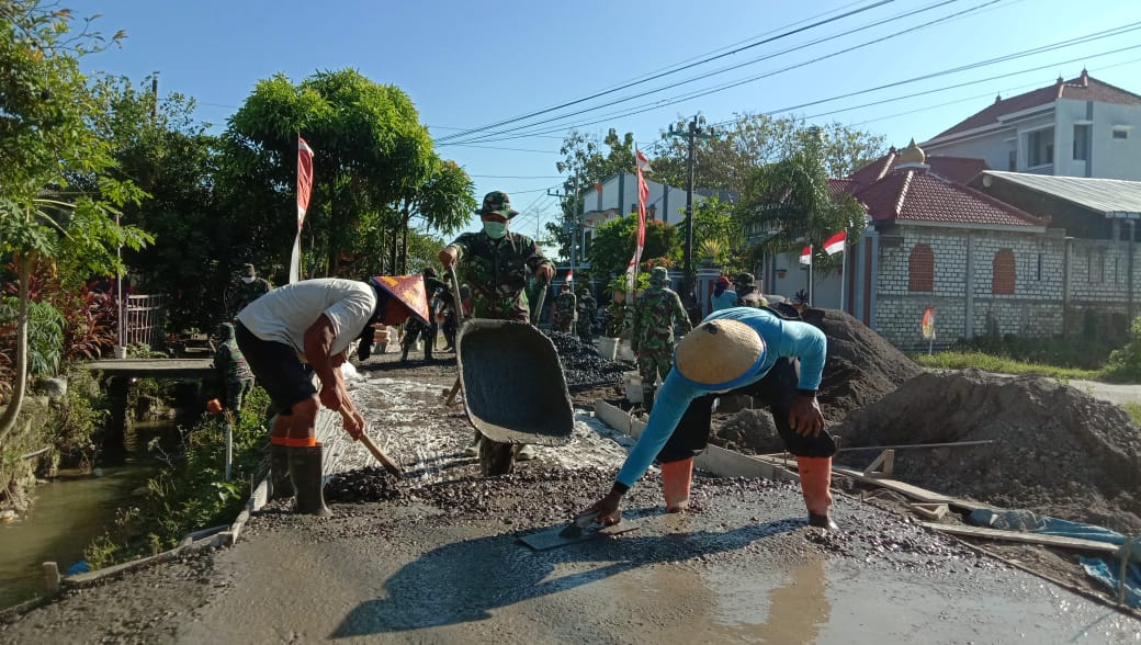 TNI Selesaikan Rabat Beton Jalan Program TMMD Reguler Ke-111 Kodim 0718/Pati