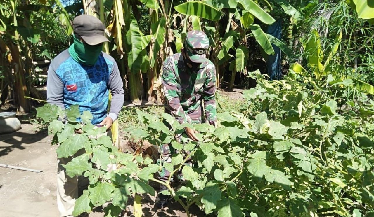 Seperti dilakukan Serda Nuril, Usai melaksanakan kegiatan pengerjaan pengecoran jalan mereka berinisiatif membantu petani di Desa Tamansari, Kecamatan Jaken, Kabupaten Pati, Jawa tengah. memanen sayur jenis terong di kebun milik Kasnari (45) Kamis sore, 17 Juni 2021.