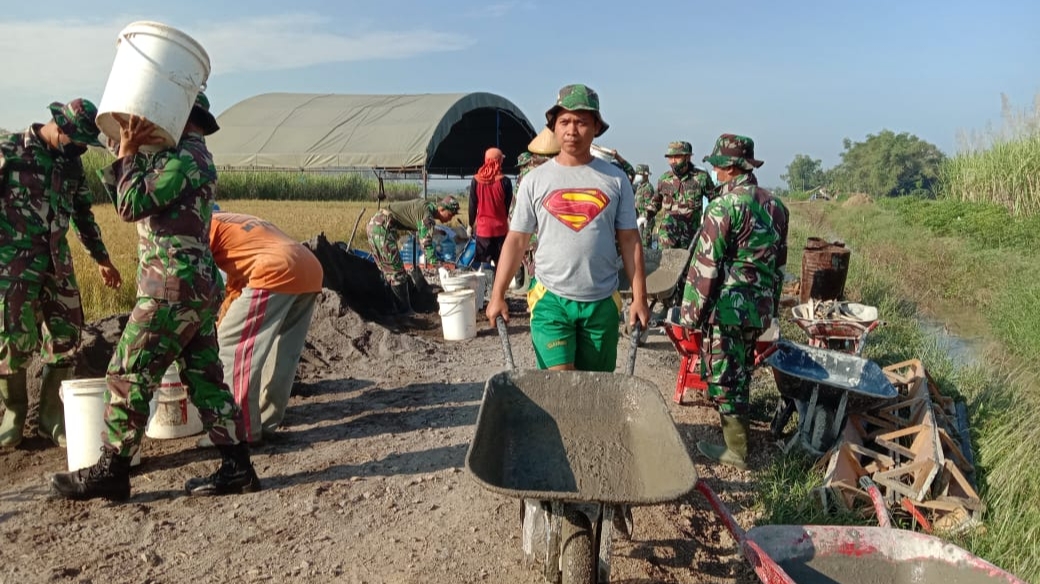 Ada yang berbeda dalam kegiatan TNI Manunggal Membangun Desa (TMMD) ke-111 yang dilaksanakan Kodim 0718/Pati di Desa Tamansari, Kecamatan Jaken, Kabupaten Pati, Selasa (22/06/2021)