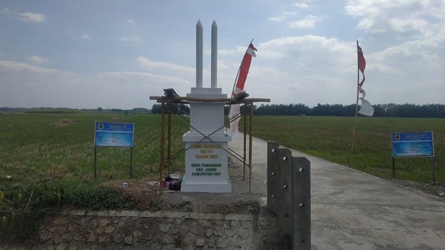 Pembangunan di Desa Tamansari, Kecamatan Jaken, Kabupaten Pati. “Tugu ini dibangun mengingat program TMMD yang ke 111 sudah mencapai 100%,” kata