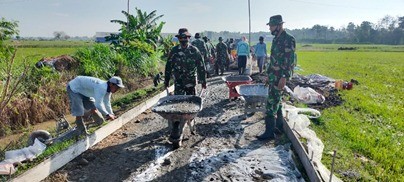 Pati – Kelihatan suasana Hiruk Pikuk berpadu dengan keindahan alam Desa Tamansari Kec, Jaken Kab.Pati saat ada Proses Pembuatan jalan Antar Desa sangat berbeda dengan hari sebelum adanya Giat TMMD yang di selenggarakan Kodim 0718/ Pati. Suasana Ramai canda tawa pekerja berpadu dengan gemuruh suara mesin molen sehingga menjadikan suasana desa menjadi lebih hidup dari sebelumnya Kalau sebelum ada TMMD suasana kelihatan sepi aktifitas pada pagi hari. Kamis (01/07/2021).