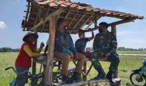Babinsa desa Tamansari Koramil 16/Jaken Kodim 0718/Pati disela kegiatan Pra TMMD melaksanakan komunikasi sosial dengan obrolan ringan dan santai sekaligus memberikan penjelasan tentang kegiatan TMMD ke-111 tahun 2021 yang didahului oleh kegiatan Pra TMMD hari ini di desa Tamansari Kecamatan Jaken Kabupaten Pati.Rabu,(02/06/2021).