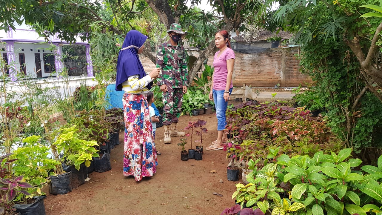 Kesempatan tersebut Serda Sutarji menyapa anjangsana ke rumah Yeni yang sehari harinya adalah perawat budidaya tanaman hias sebagai mata pencaharian tambahan untuk ekonomi keluarga.