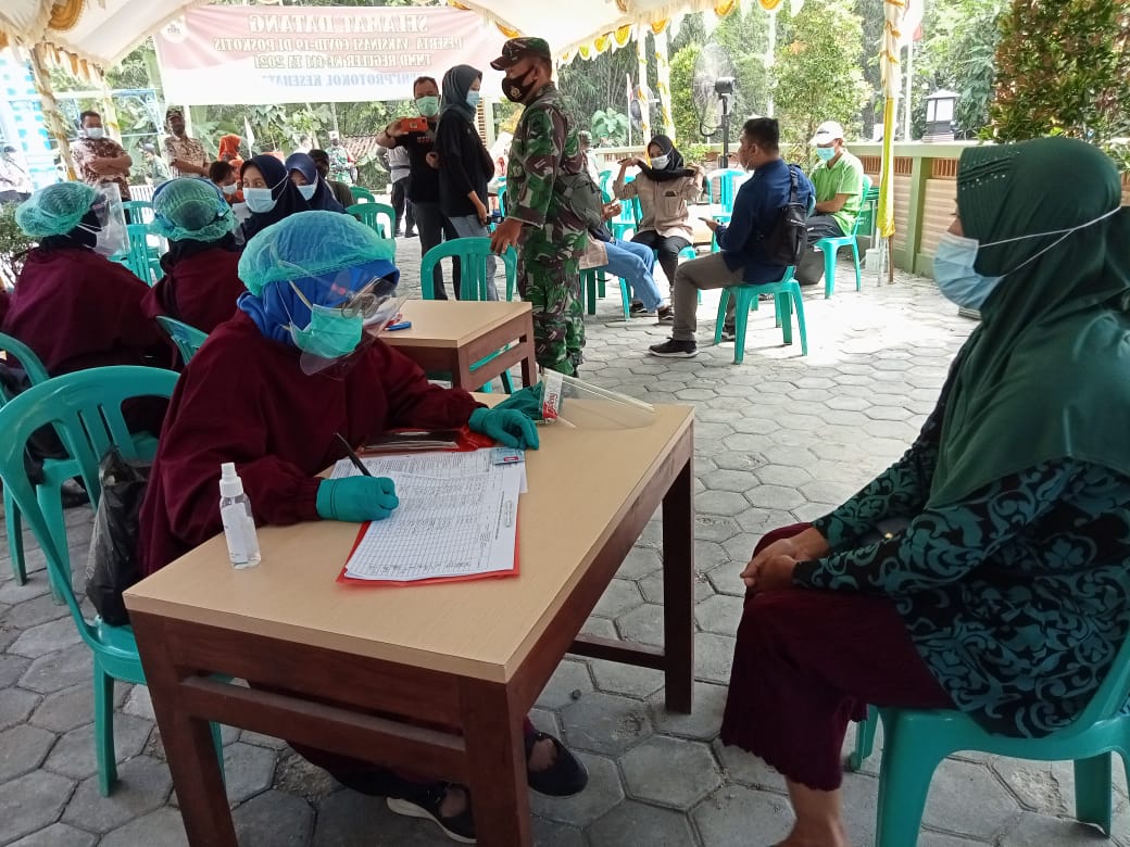 Dengan adanya Program Serbuan Vaksinasi dilaksanakan Kerjasama antara Pemerintah Kabupaten Pati, Dinas Kesehatan, DKT Pati dan Kodim 0718/Pati di wilayah Kecamatan Jaken yang mana di wilayah ini juga sedang dilaksanakan TMMD Reguler ke-111. Kamis (08/07/2021)