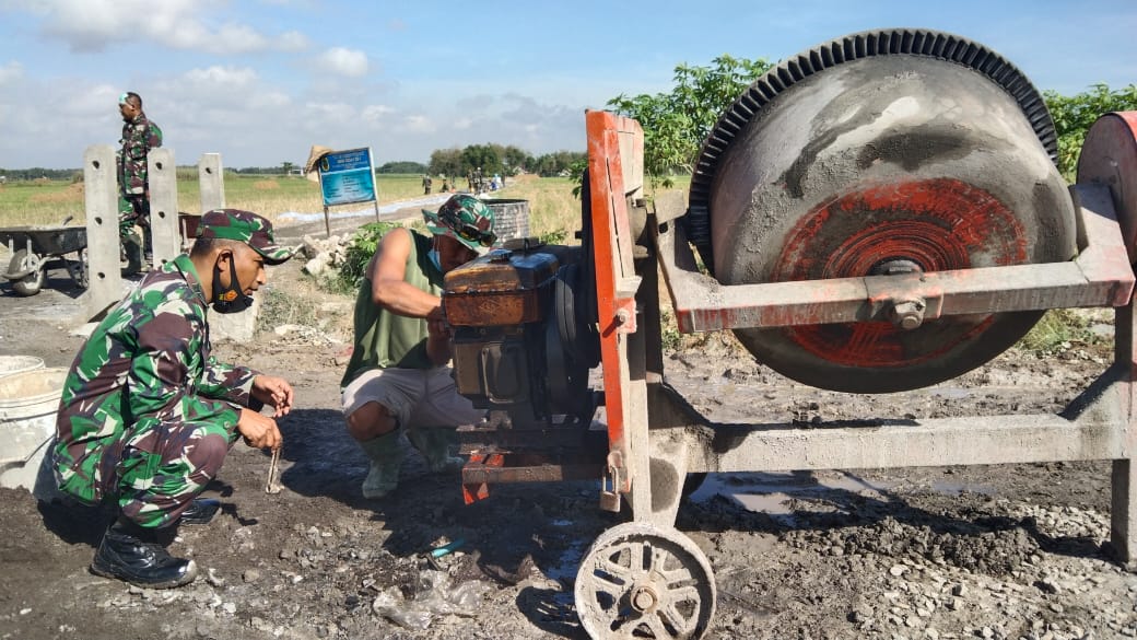 Pati – Beruntung Tim Satgas TMMD Serda Sulistiyanto di bantu Wadan Satgas TMMD Mayor Inf. Moch.Sholickin.S.ag.Msi, yang mempunyai keahlian mesin diesel, sehingga bisa memperbaiki mesin molen yang digunakan untuk membangun jalan TMMD ke-111 Kodim 0718/ Pati di Desa Tamansari,Kecamatan Jaken, Kabupaten Pati, yang tiba-tiba ngadat(rusak).