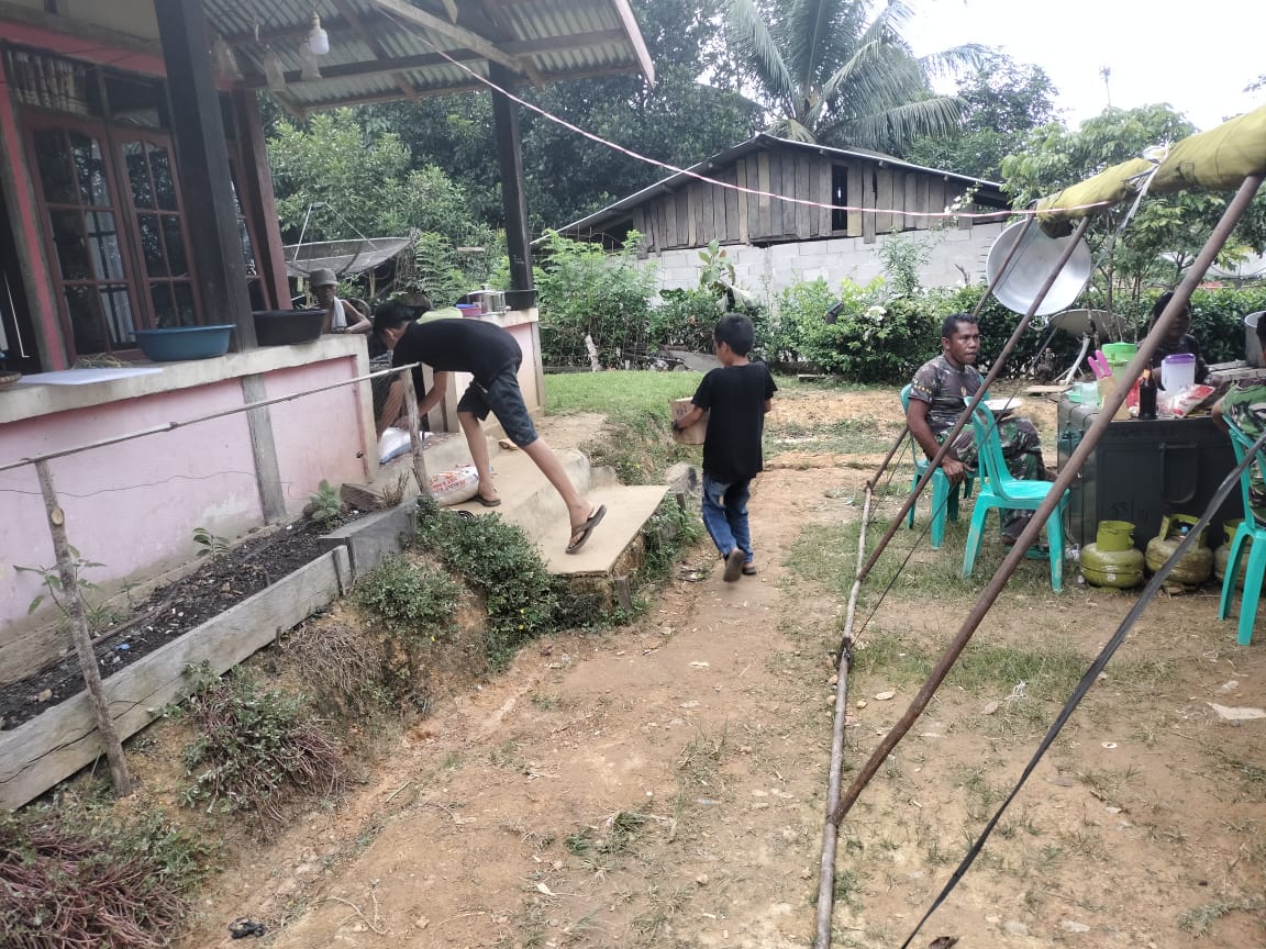 DI bidang lainnya, untuk menyediakan logistik bagi TNI Satgas dan warga yang sedang bekerja di lapangan, tidak hanya orang dewasa saja yang turut membantu di tenda dapur umum satgas TMMD anak-anak pun antusias membantu.