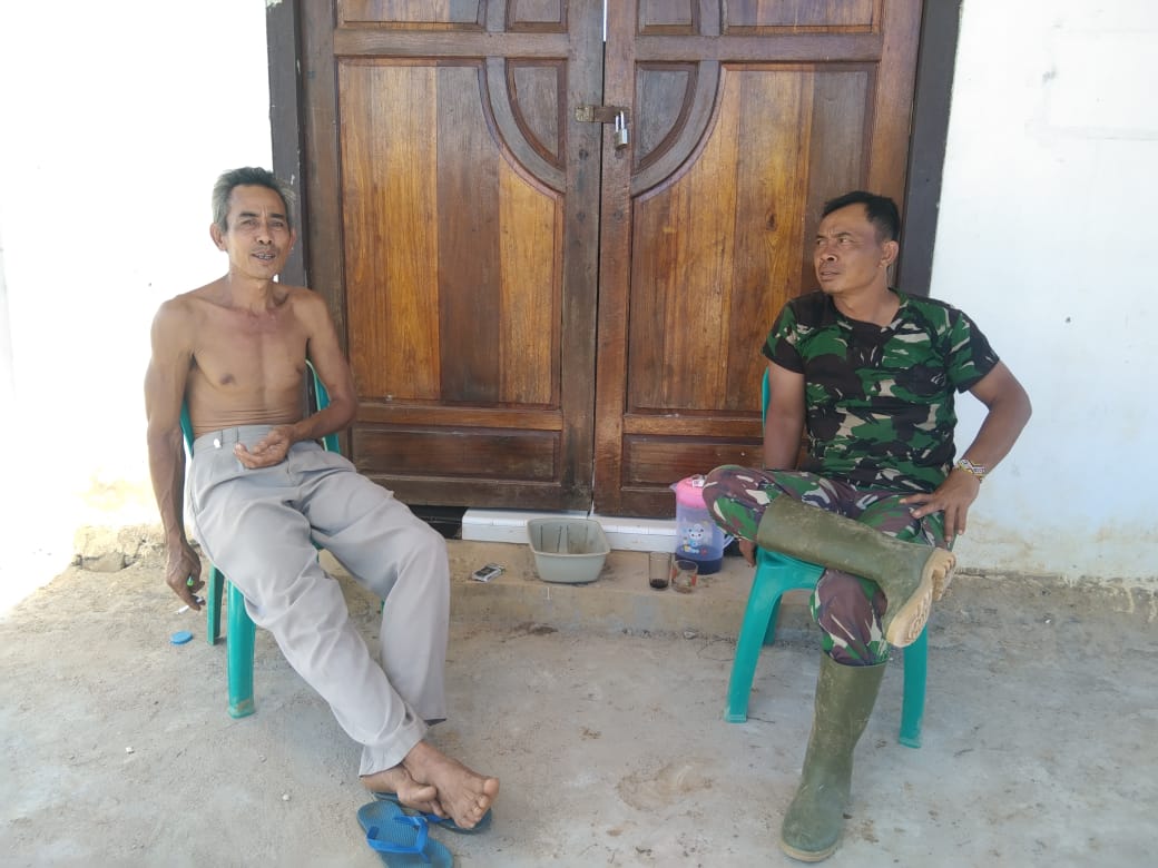 Seperti yang dilakukan salah satu personil Satgas TMMD Kodim 1202/Skw ini, terlihat melakukan anjangsana di rumah Pak Kirno di Desa Sentangau Jaya.